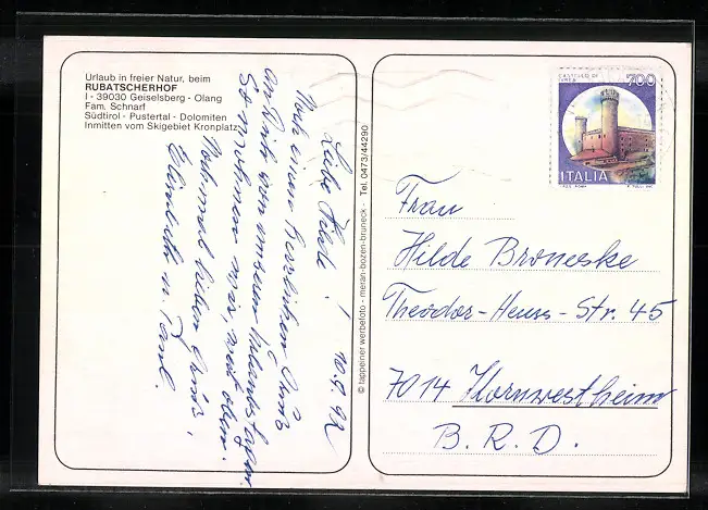 alte Ansichtskarte, gelaufen 1992, guter Zustand