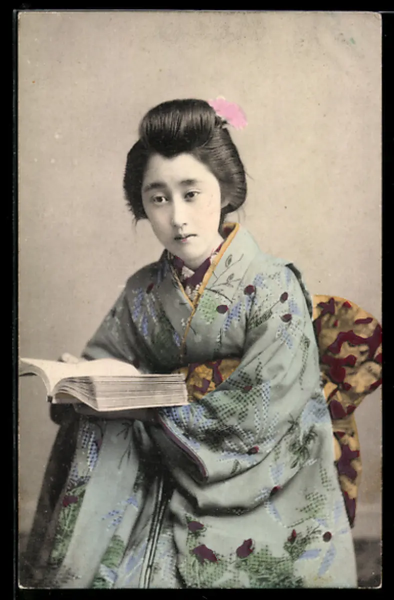 AK Geisha mit einem Buch