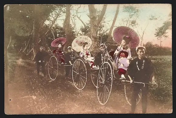 AK Geishas werden von Rikscha-Fahrern gezogen