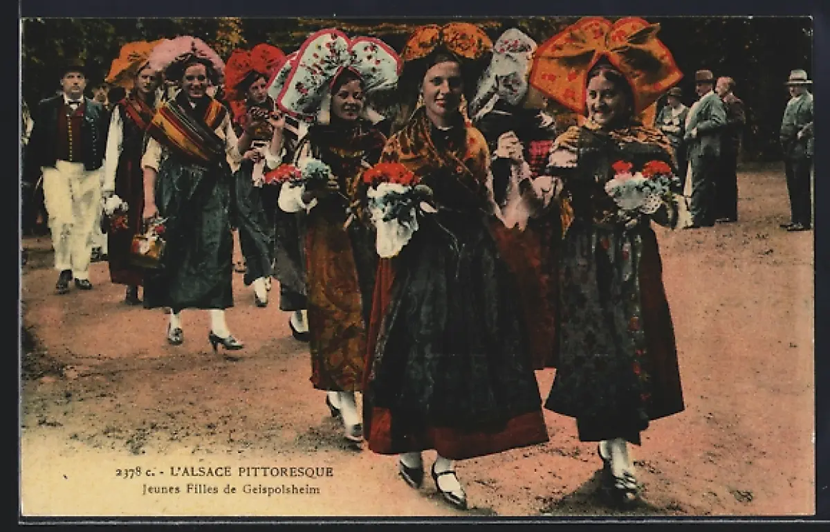 AK Geispolsheim /Alsace, Jeunes filles en costumes traditionnels lors d`une fête locale