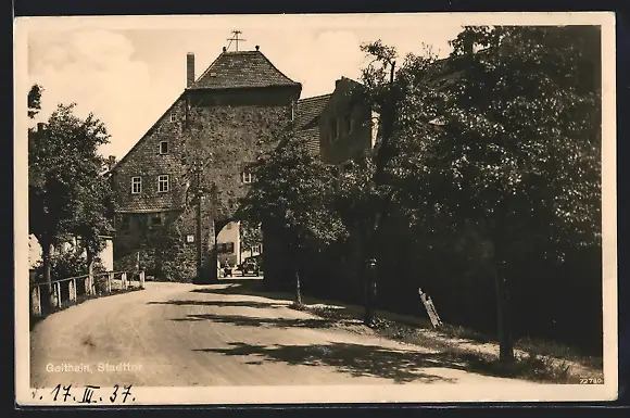 AK Geithain, Strasse mit Bäumen zum Stadttor