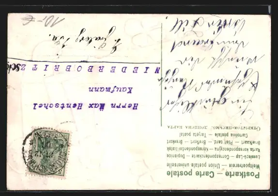 alte Ansichtskarte, gelaufen 1906, minimaler Einriss re. mittig, guter Zustand
