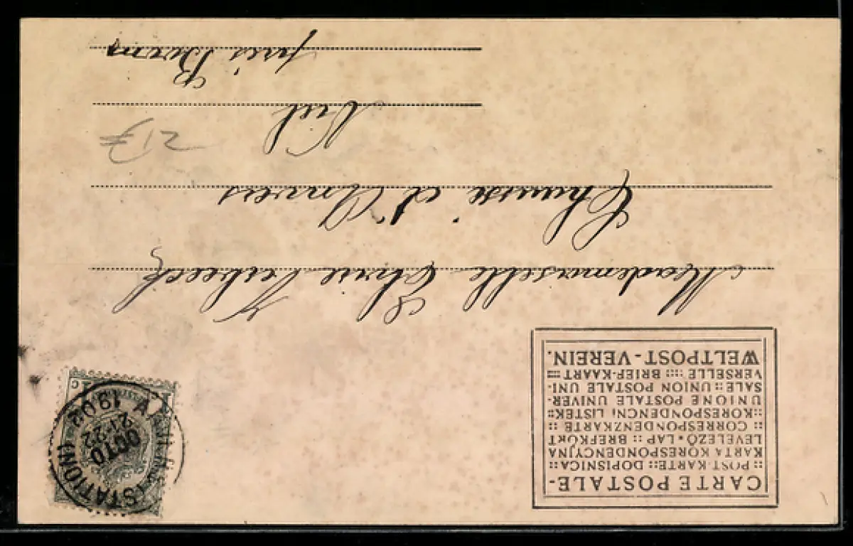 alte Ansichtskarte, gelaufen 1902, Stempelspur, guter Zustand