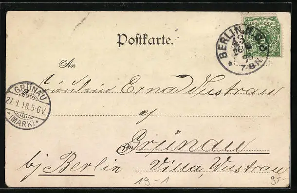 alte Ansichtskarte, gelaufen 1898, Eckknicke re. oben u. li., Stempelspur, guter Zustand