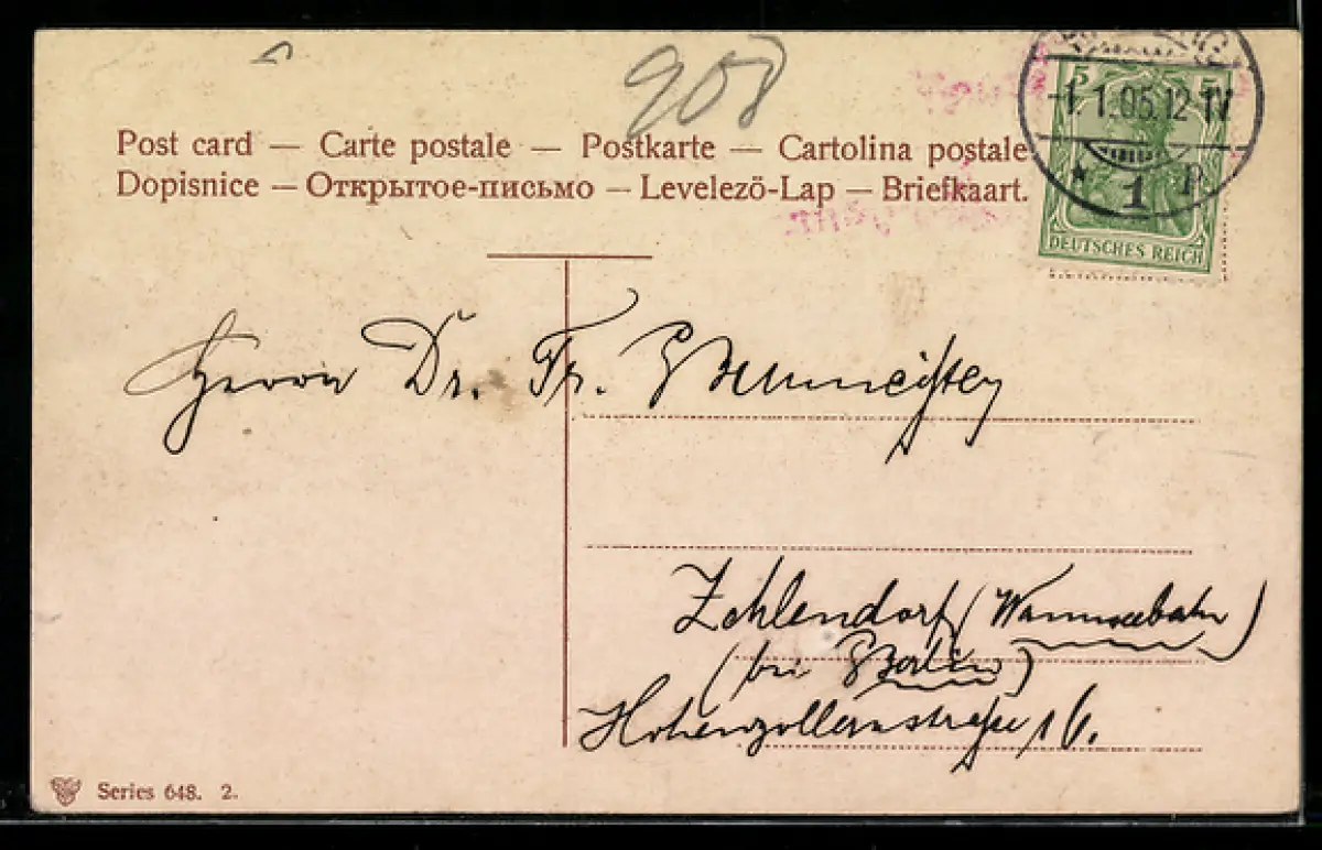 alte Ansichtskarte, gelaufen 1905, Eckknick re. oben, guter Zustand