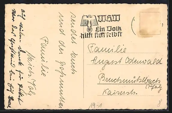 alte Ansichtskarte, gelaufen, Briefmarke entfernt, rückseitig Oberflächenschaden, guter Zustand