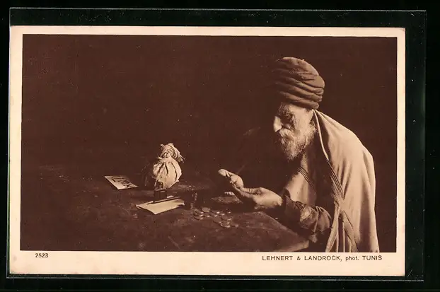 AK Geldwechsler, Jüdischer Mann zählt Münzen