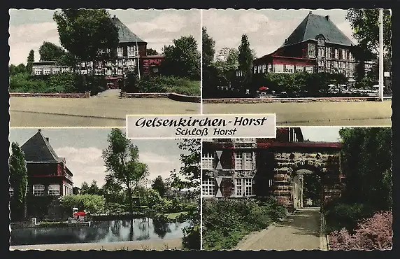 AK Gelsenkirchen-Horst, Schloss Horst, Tor, Uferpartie
