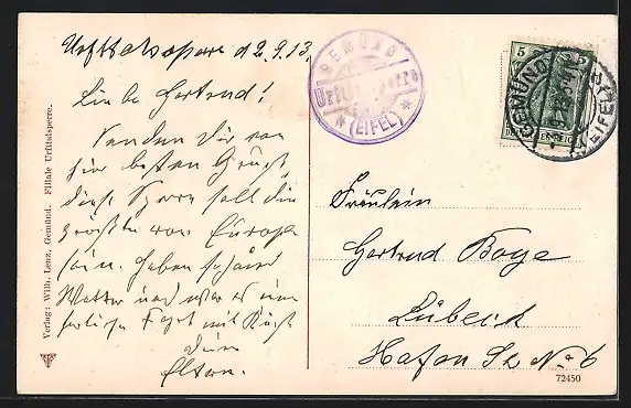 alte Ansichtskarte, gelaufen 1913, Abriebspur re. unten, guter Zustand