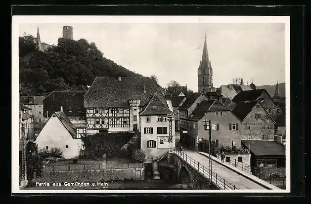 AK Gemünden / Main, Partie mit Ort und Burgruine