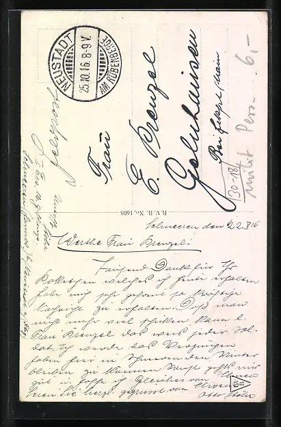 alte Ansichtskarte, gelaufen 1916, Eckknick li. unten, guter Zustand