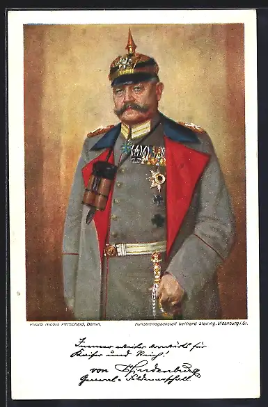 AK Generalfeldmarschall Paul von Hindenburg, Portrait in Uniform mit Ausspruch und Signatur