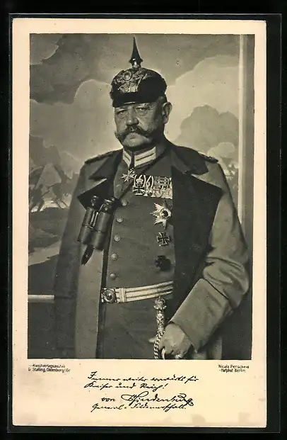 AK Generalfeldmarschall Paul von Hindenburg in Uniform mit Pickelhaube und Fernglas