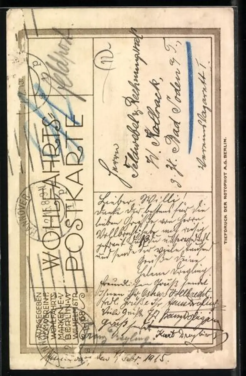 gelaufen 1915, rückseitig Oberflächenschaden, guter Zustand