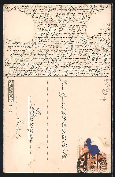 alte Ansichtskarte, gelaufen 1918, rückseitig Klebe- und Papierreste, rückseitig Oberflächenschaden, guter Zustand
