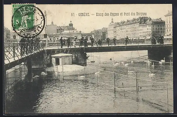 AK Genève, Etang des Cygnes et Pont des Bergues