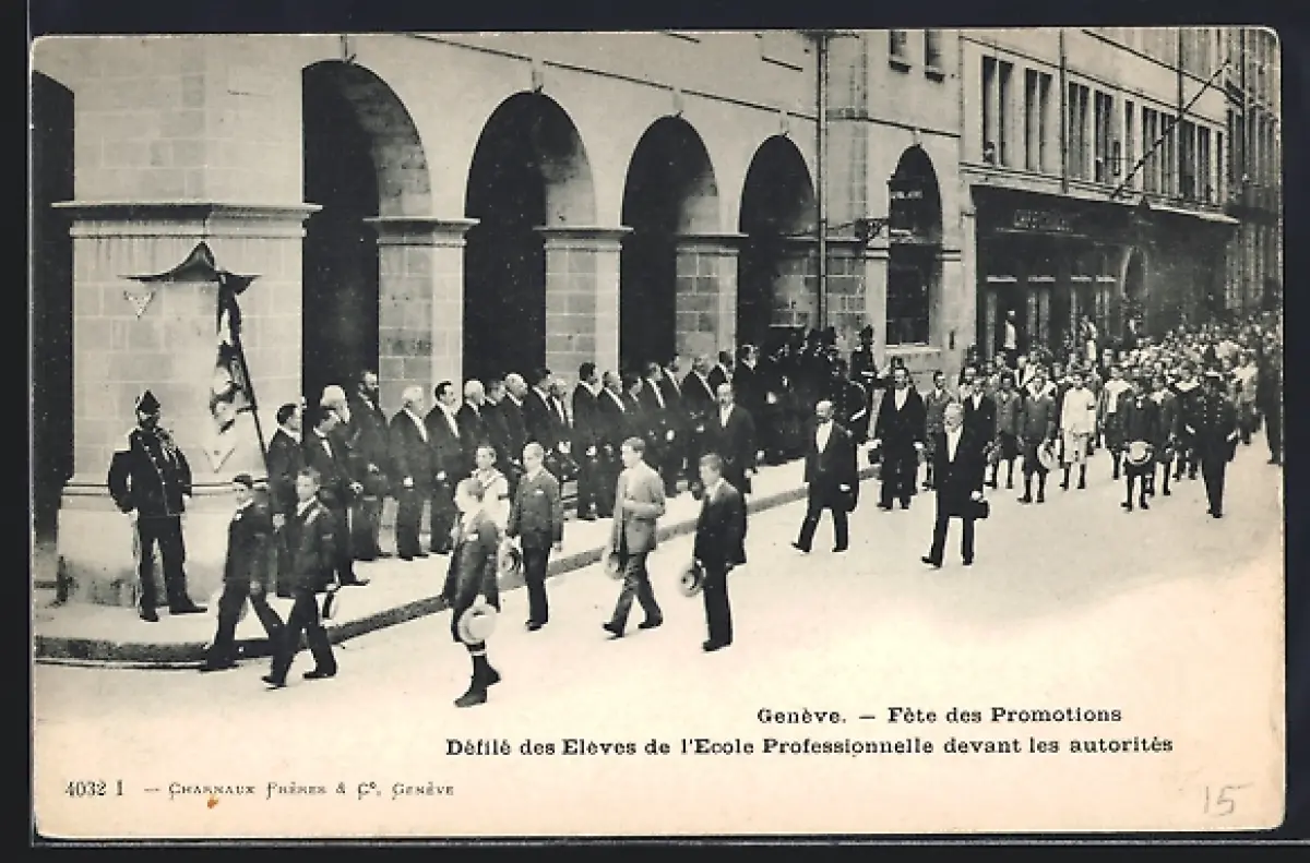 AK Genève, Fête des Promotions, Défilé des Elèves de l`Ecole Professionelle devant les autorités