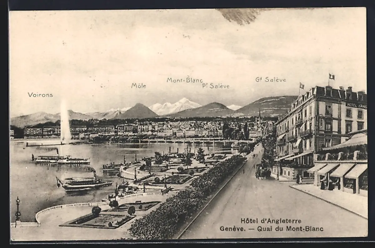 AK Genève, Hôtel d`Angleterre, Quai du Mont-Blanc, Voirons, Môle et Gd Salève