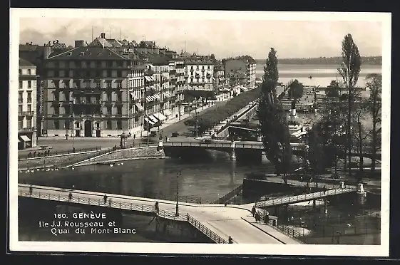AK Genève, Ile J. J. Rousseau et Quai du Mont-Blanc