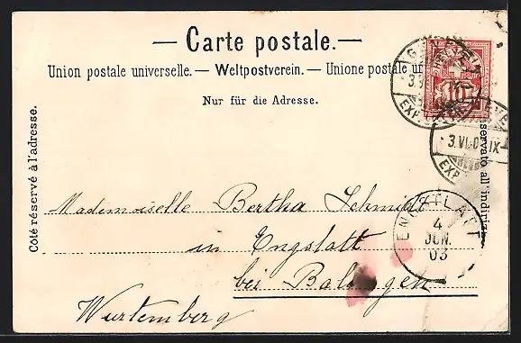 gelaufen 1903, Eckknicke li. und unten re., guter Zustand