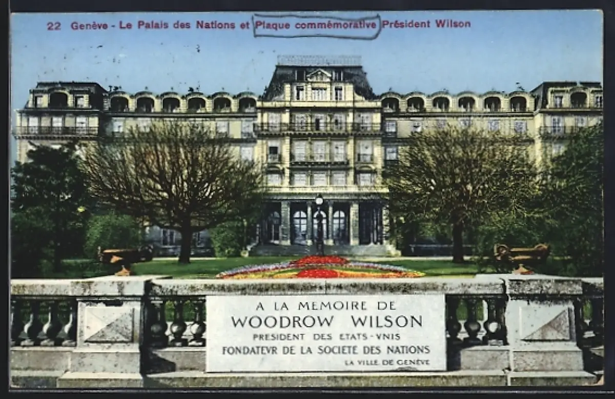 AK Genève, Le Palais des Nations et Plaque commémorative Président Wilson