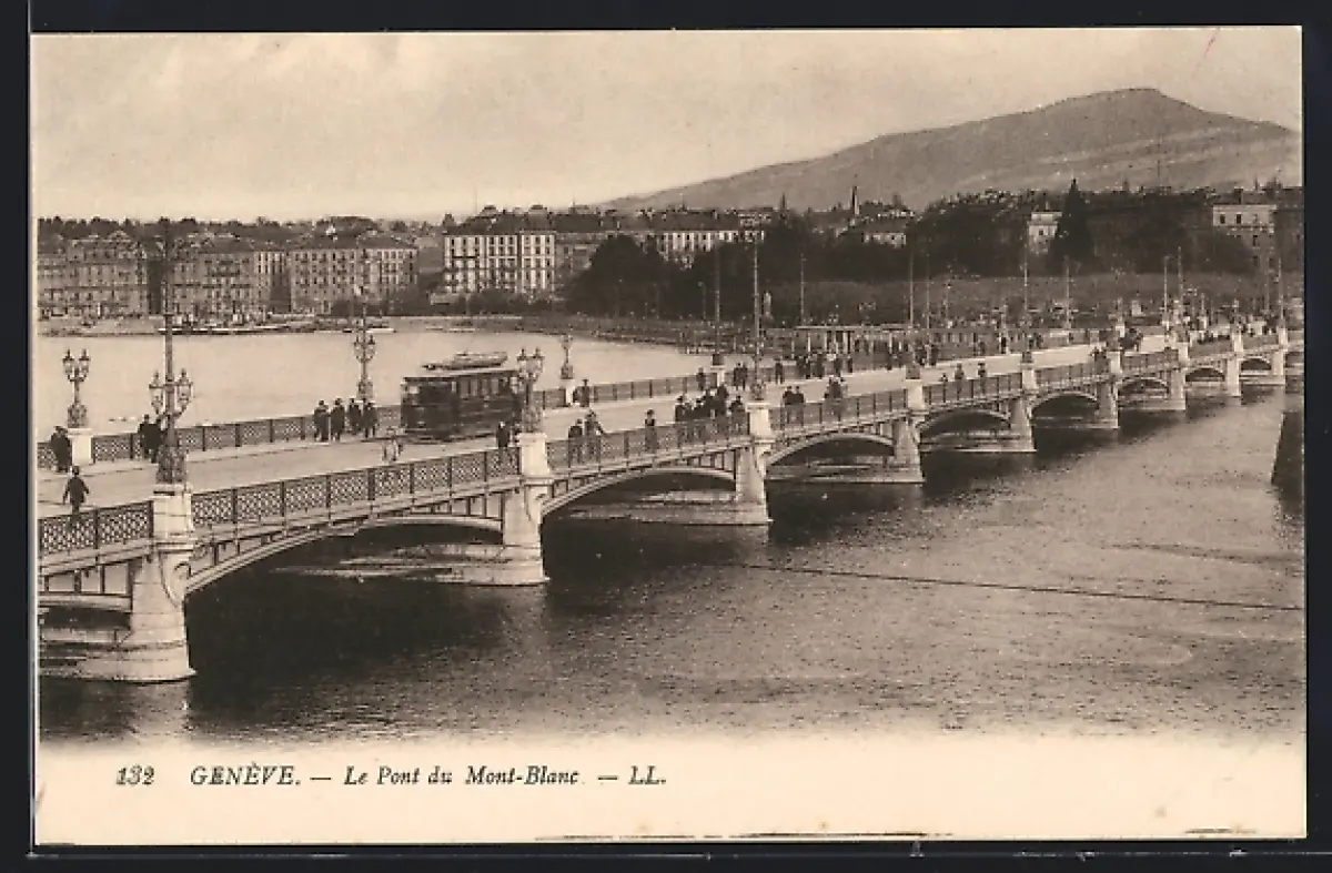 AK Genève, Le Pont du Mont-Blanc, Strassenbahn