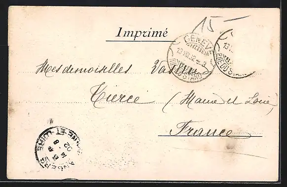 gelaufen 1902, Briefmarke entfernt, rückseitig Oberflächenschaden, guter Zustand