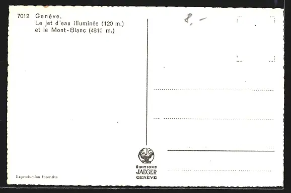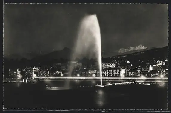 AK Genève, Le jet d`eau illuminée et le Mont-Blanc