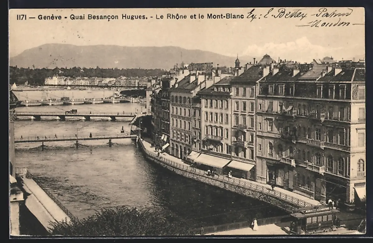 AK Genève, Quai Besancon Hugues, Le Rhône et le Mont-Blanc