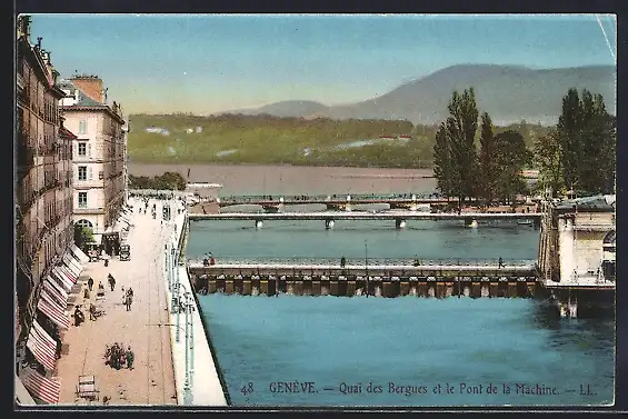AK Genève, Quai des Bergues et le Pont de la Machine