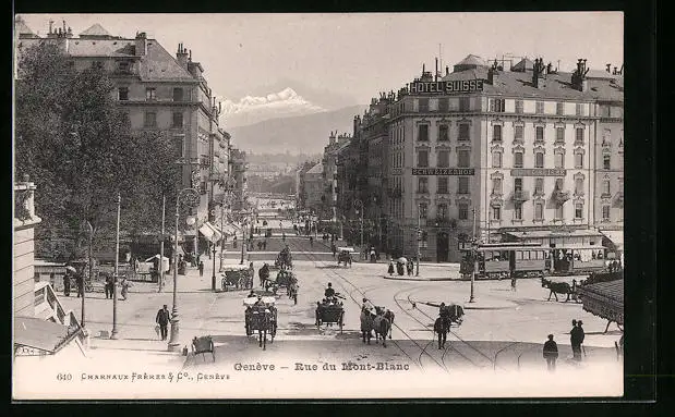 AK Genève, Rue du Mont-Blanc, Strassenbahn