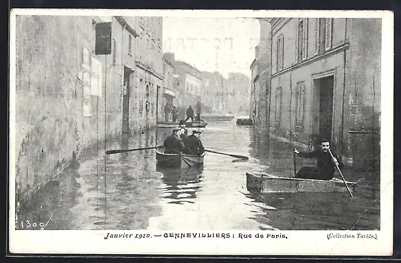 AK Gennevilliers, Rue de Paris inondée lors de la crue de janvier 1910