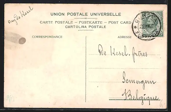 alte Ansichtskarte, gelaufen, Eckknick unten re., Stempelspur, guter Zustand