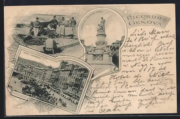 AK Genova, Piazza Caricamento, Monumento a Cristoforo Colombo