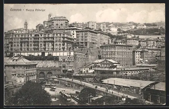 AK Genova, Piazza Principe, Strassenbahn