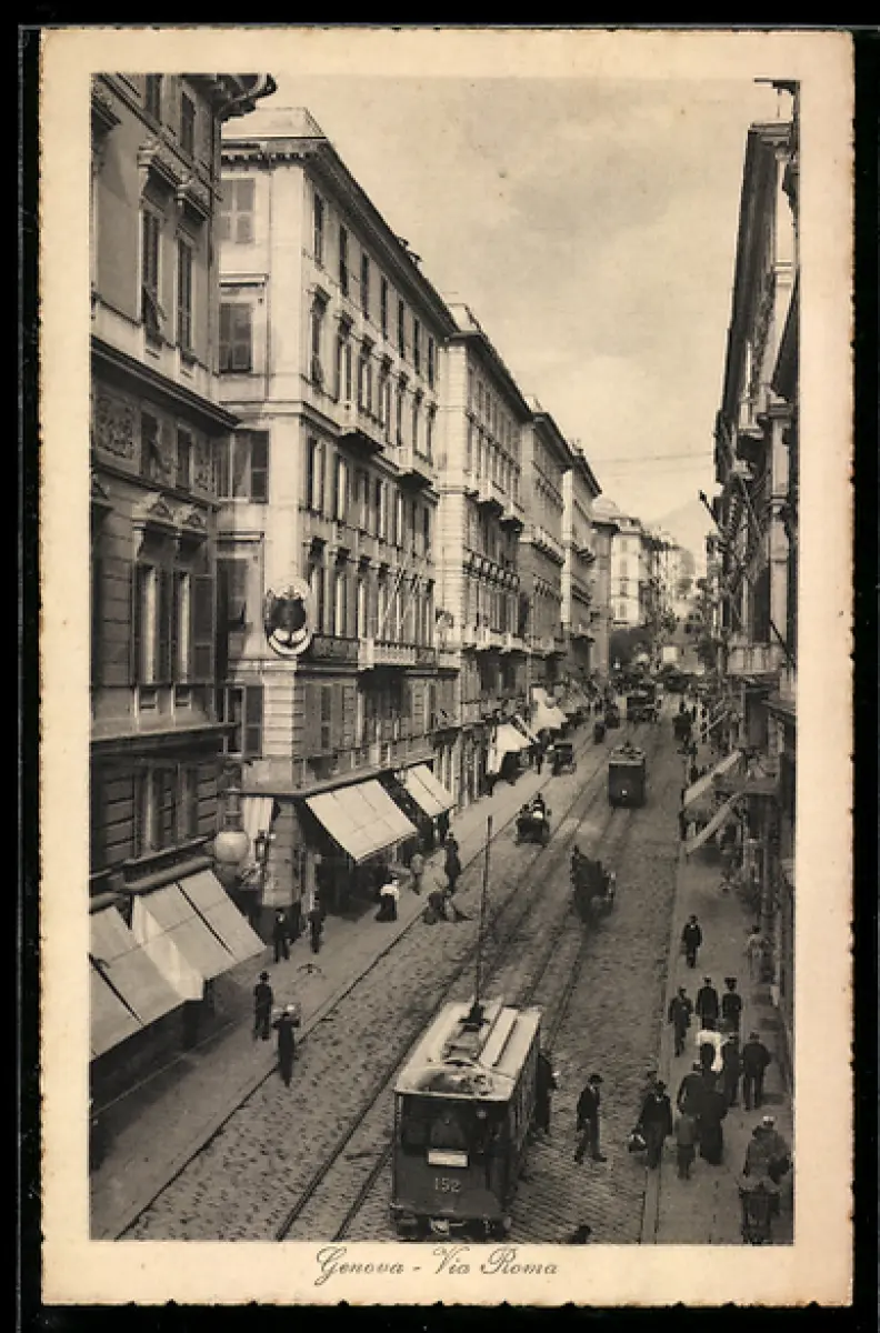 AK Genova, Via Roma mit Strassenbahn