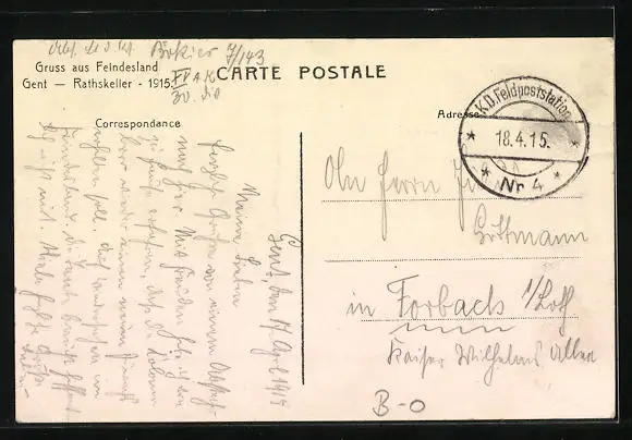 alte Ansichtskarte, gelaufen 1915, Bugspur li. mittig, guter Zustand