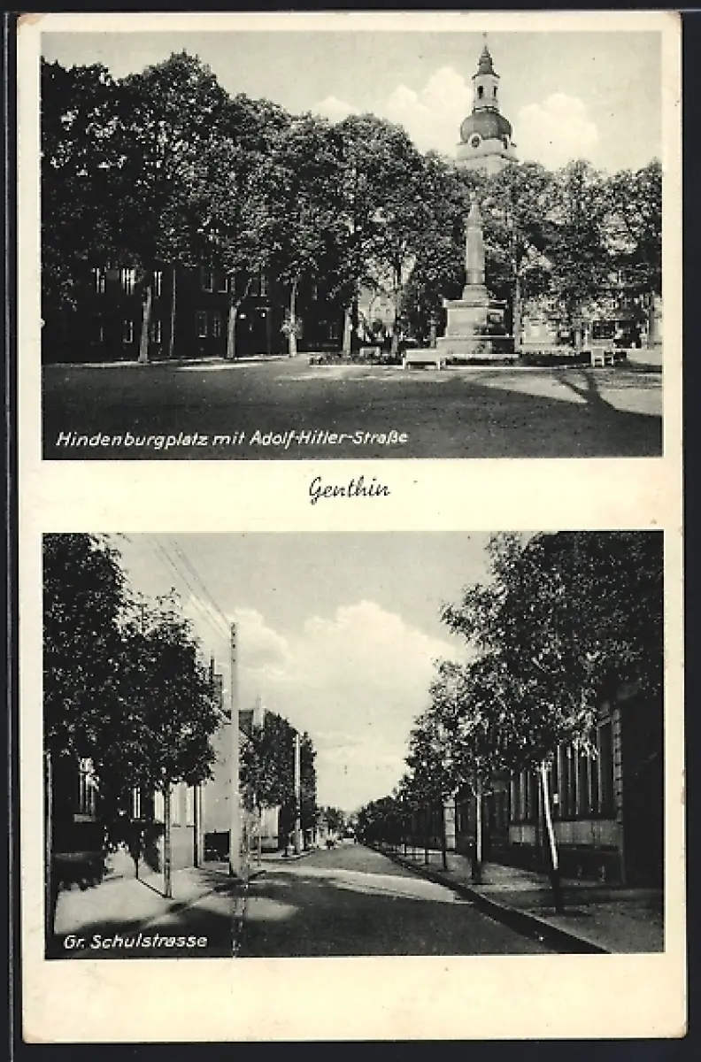 AK Genthin, Hindenburgplatz mit Strasse, Gr. Schulstrasse