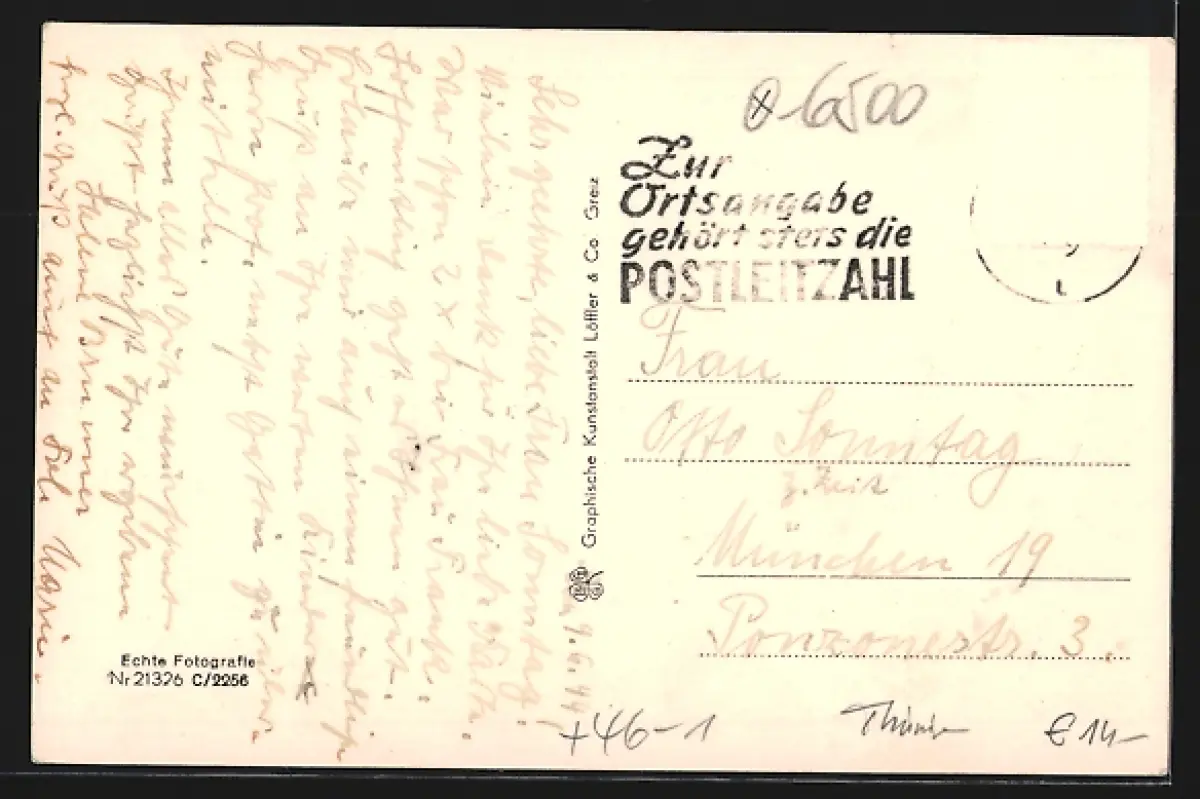 alte Ansichtskarte, gelaufen 1944, Briefmarke entfernt, guter Zustand