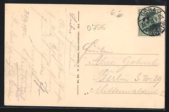 alte Ansichtskarte, gelaufen 1912, Stempelspur, guter Zustand