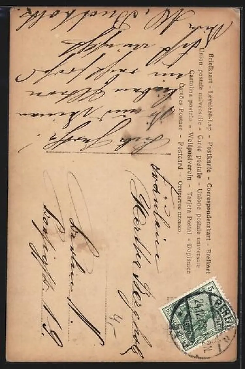 alte Ansichtskarte, gelaufen 1908, Eckknick unten re., guter Zustand
