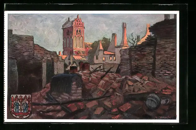 AK Gerdauen, zerstörte Kirchstrasse mit Kirche