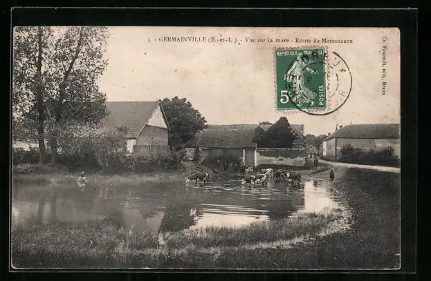 AK Germainville, Vue sur la mare, Route de Marsauceux