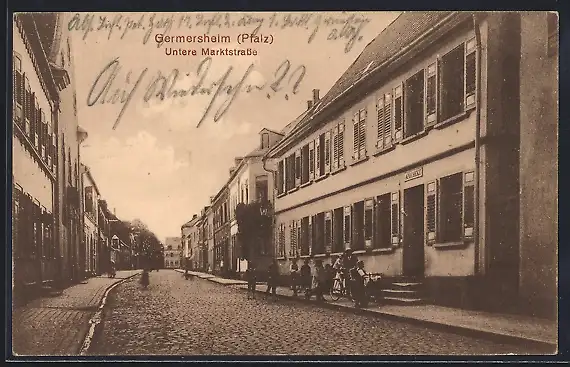 AK Germersheim /Pfalz, Untere Markstrasse mit Apotheke