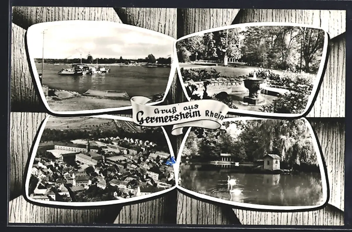 AK Germersheim /Rhein, Rheinansicht, Stadtansicht, Park mit Pavillon