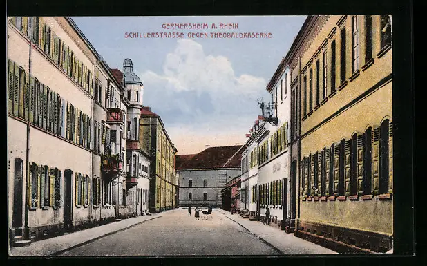 AK Germersheim a. Rhein, Schillerstrasse gegen Theobaldkaserne