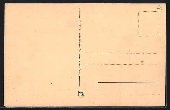 Personenbezogene Daten auf der Rückseite der Karte wurden durch blauen Textmarker unkenntlich gemacht. Die blauen Stellen sind auf die Vorderseite durchgeweicht und wirken sich negativ auf das Postkartenfoto aus