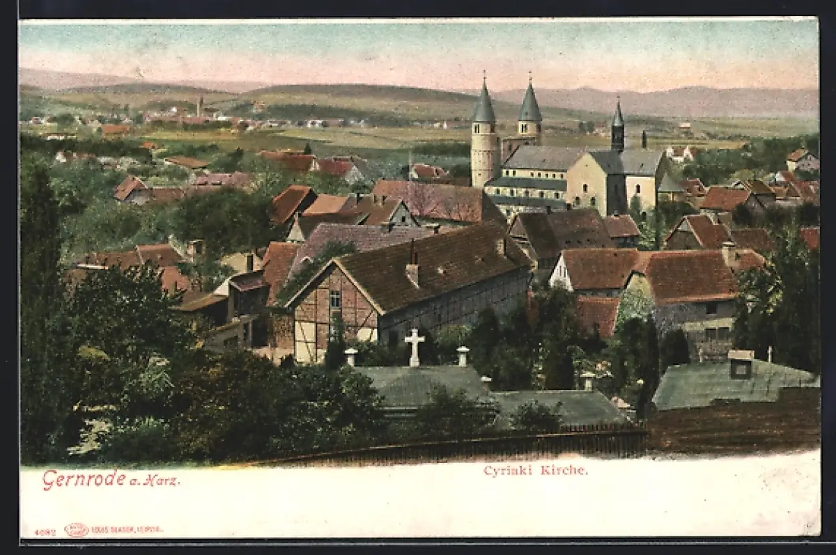 AK Gernrode a. Harz, Ortsansicht mit Cyriaki Kirche