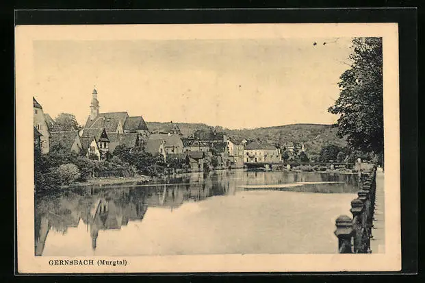 AK Gernsbach (Murgtal), Ortsansicht über das Wasser