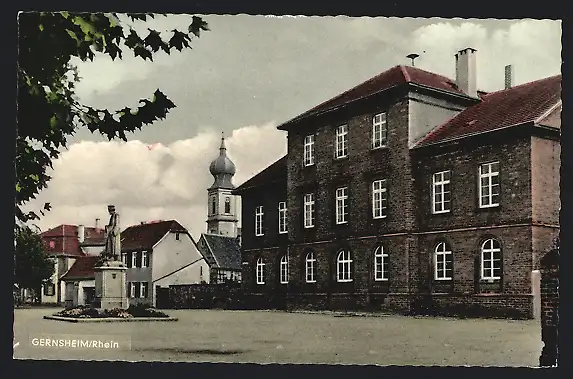 AK Gernsheim /Rhein, Strassenpartie mit Kirche